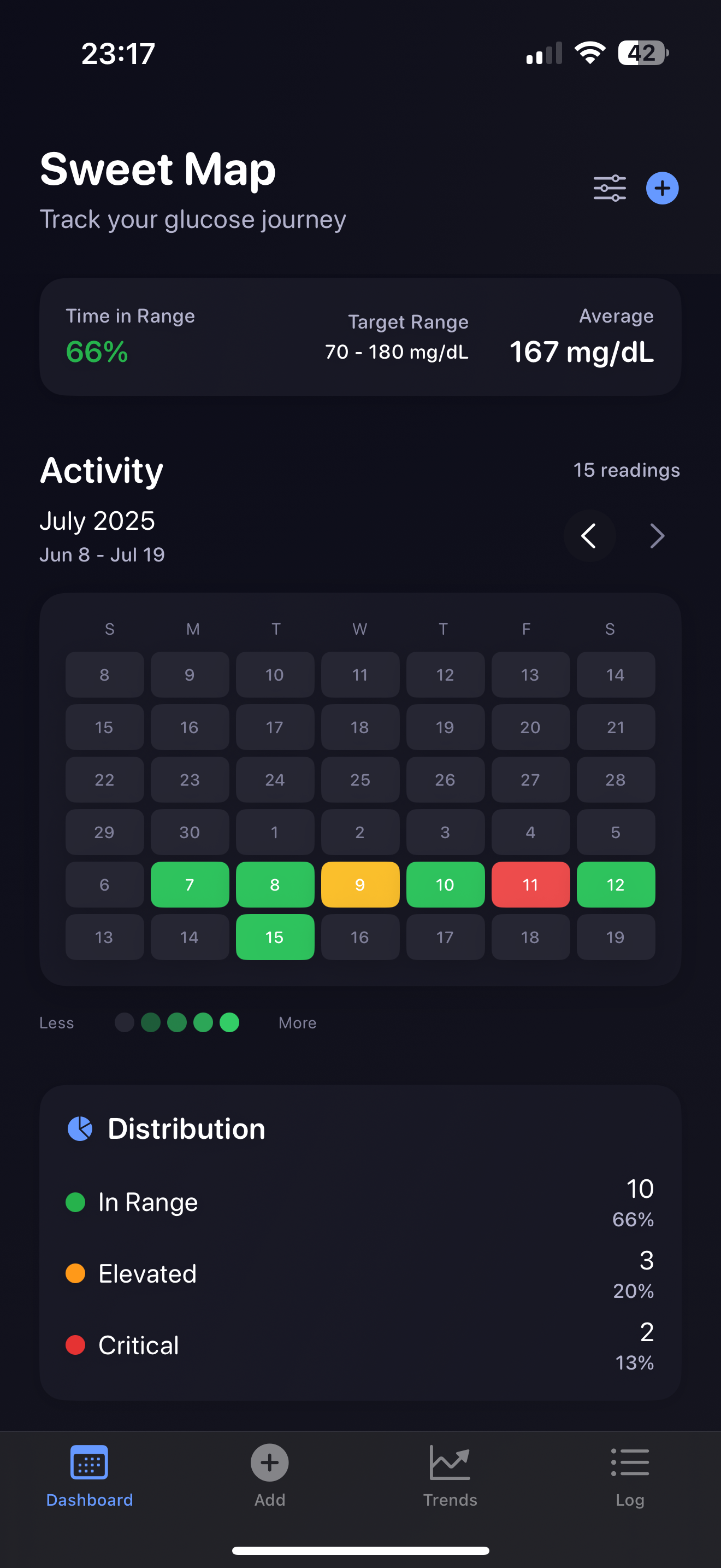 Whether you're managing diabetes, prediabetes, or just curious about your blood sugar, Sweet Map makes tracking effortless and insightful.